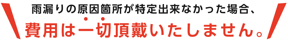 雨漏りの原因や雨漏り箇所が特定出来なかった場合、費用は一切頂戴いたしませんので、安心してお申し付けください。
