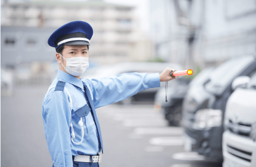 商業施設・公的施設・港湾局に付帯する駐車場において、お客様が円滑にお買い物や用事を済ますことができるように誘導し、人身事故・車両事故等の交通事故を未然に防ぐ業務です。